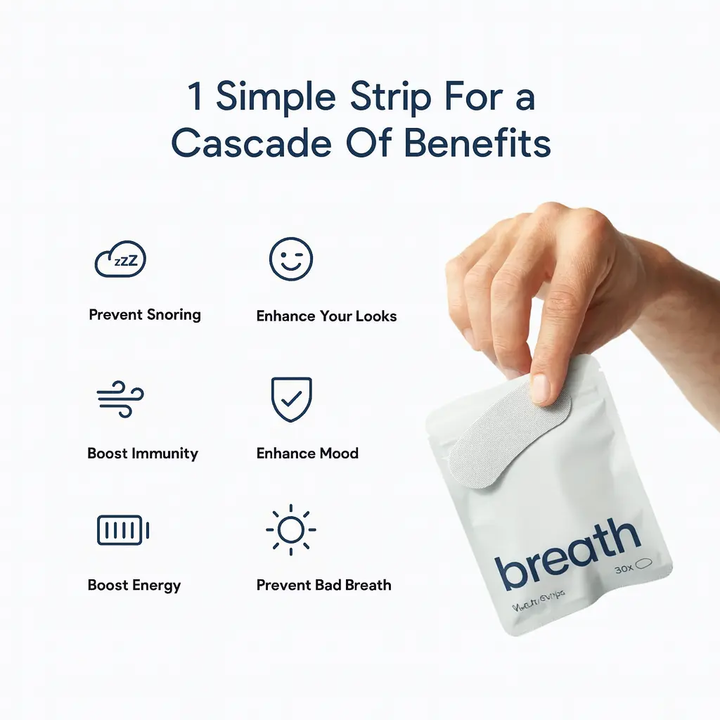 By keeping your mouth closed with Breath, you maintain proper saliva flow throughout the night, waking up with fresher breath.